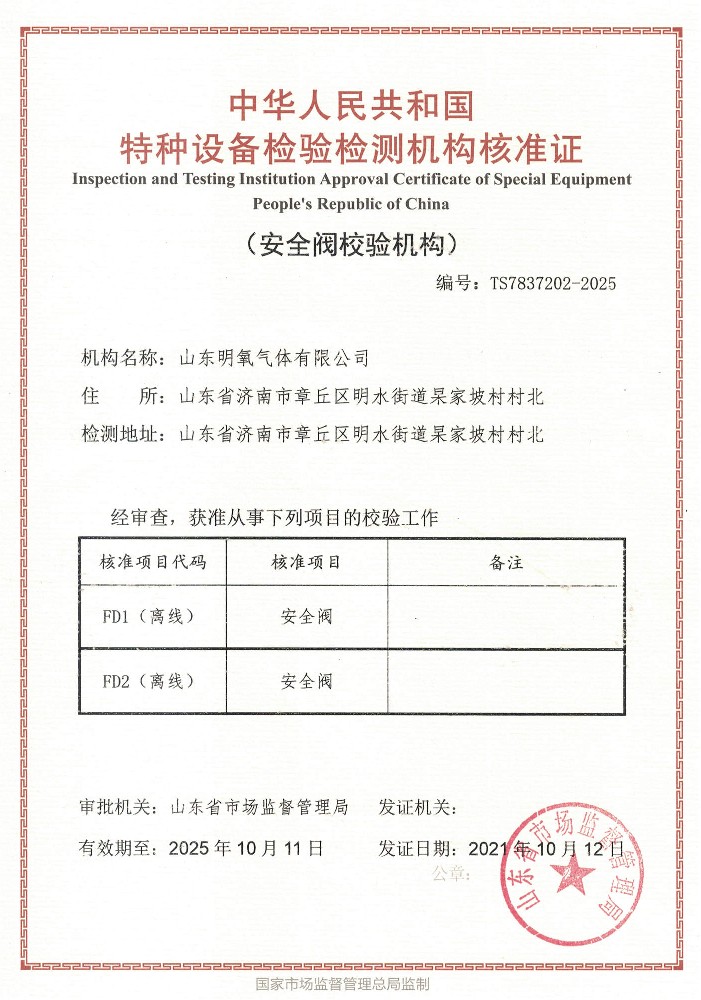 ??? 山東明氧氣體有限公司的前身為始建于1993年的章丘市明水氧氣廠,2020年12月企業由民營獨資轉型升級為山東明氧氣體有限公司,企業進入新的發展階段。公司位于山東省濟南市章丘區明水街道杲家坡村村北,占地面積4000平方米,注冊資金500萬元,固定資產投資3000萬元,主要經營項目為醫用氧氣、工業氧氣、氮氣、高純氮氣、氬氣、高純氬氣、高純氦氣、二氧化碳、混合氣體等各種工業氣體、高純氣體、混合氣體的充裝銷售、各類氣瓶的銷售、安全閥校驗、鋼質無縫氣瓶的檢驗等。